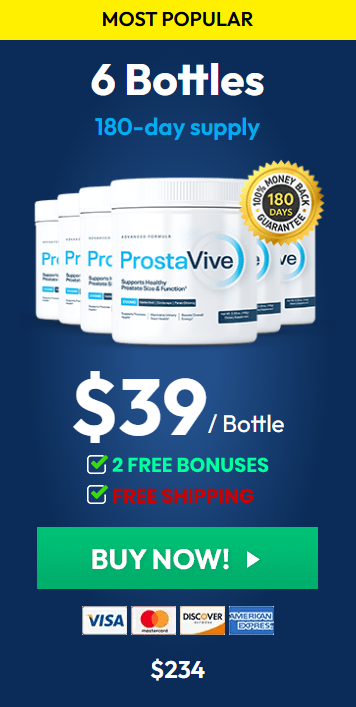 For optimal results, it is suggested to use ProstaVive for 3–5 months. Many customers purchase 3 to 6 bottles to ensure continuous use and take advantage of discounts.